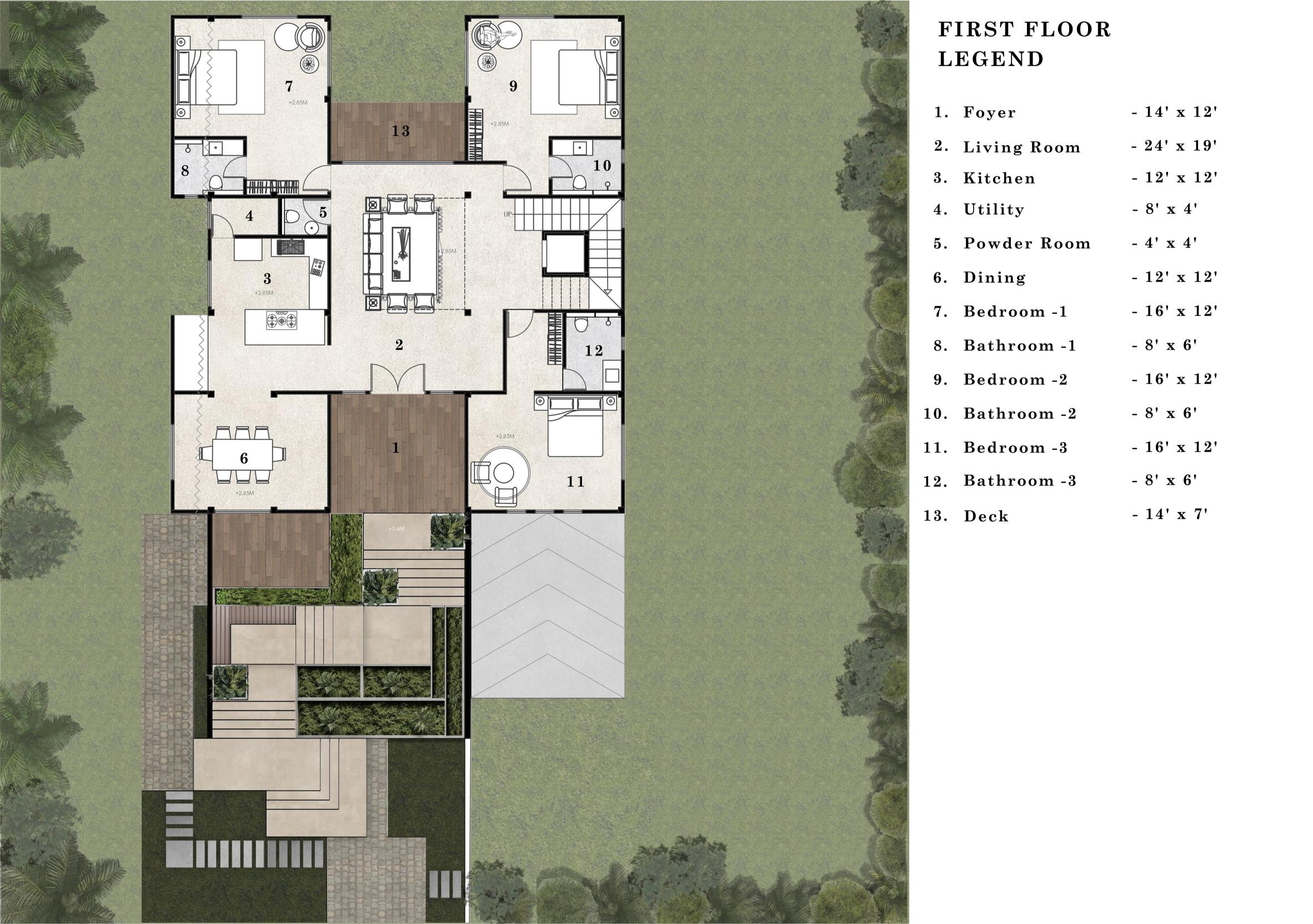1 Living, 2 bedroom, 3 bathroom, Deck -570 sq ft