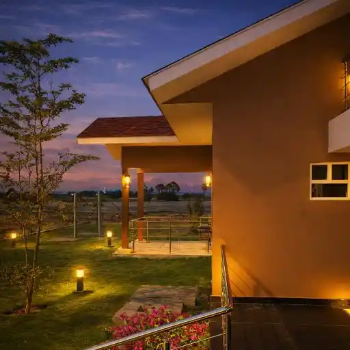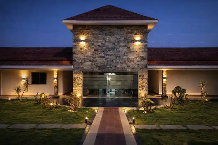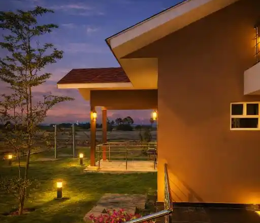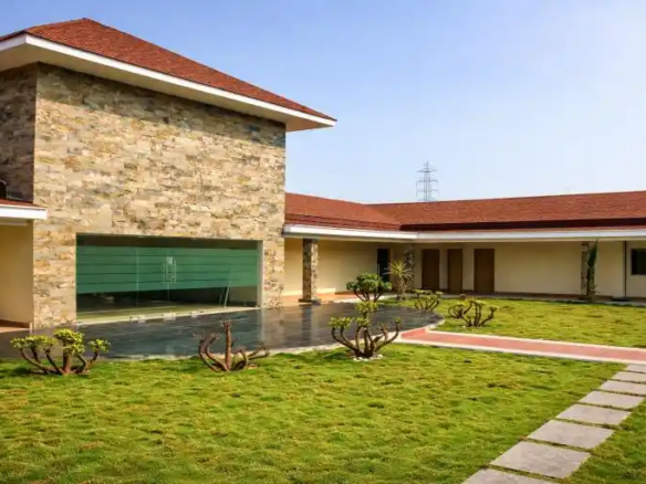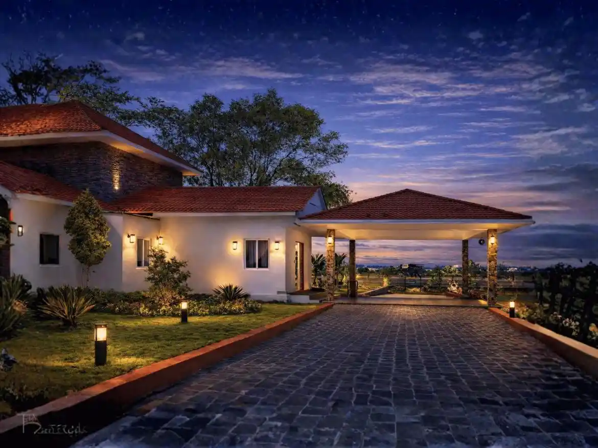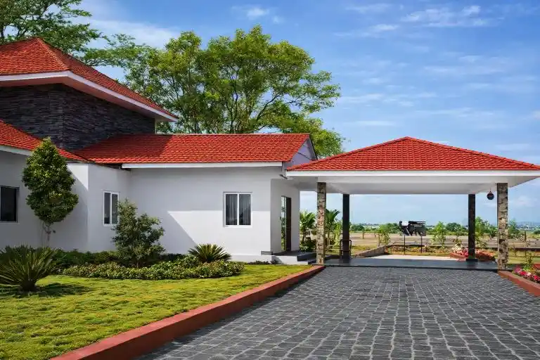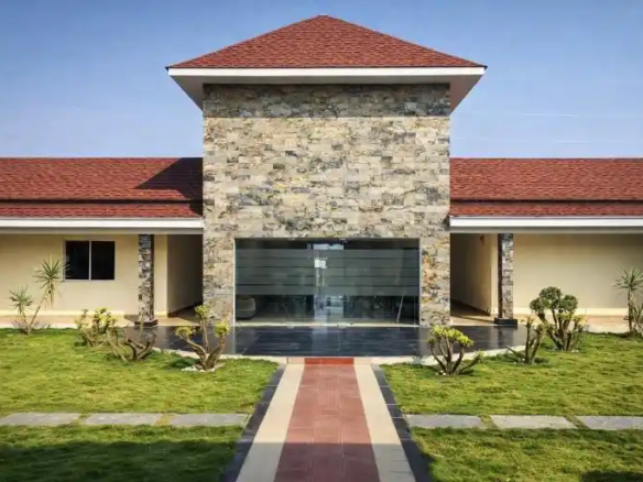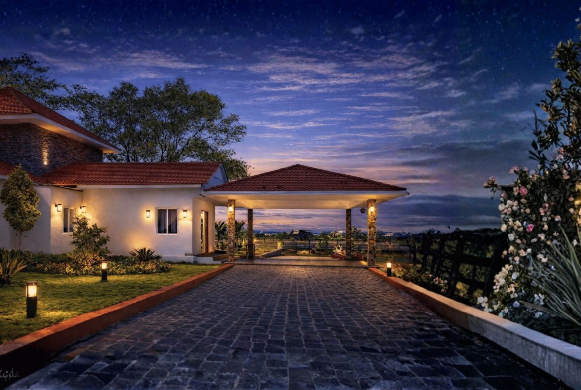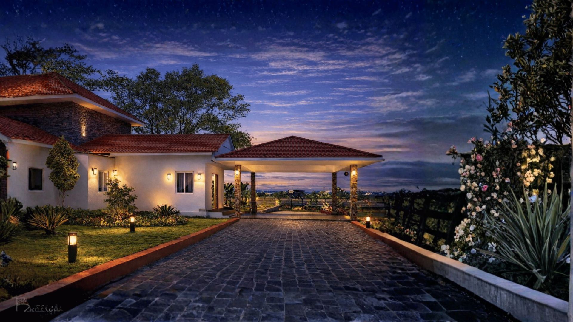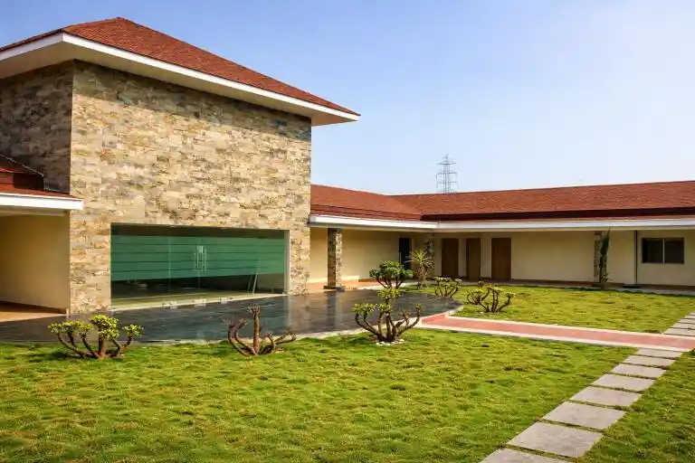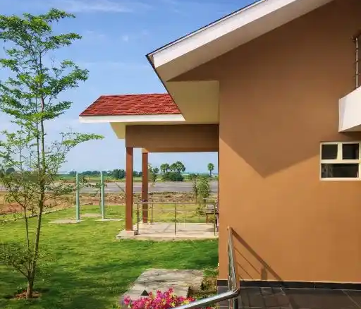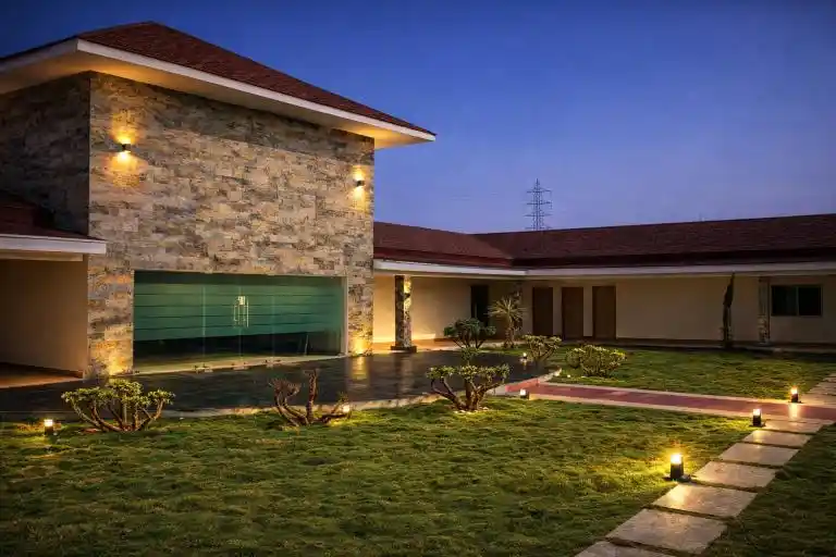 A calm and relaxing guest house for the MD of Greenko, designed to blend with its natural surroundings. Built with LGSF construction and a shingles roof, the space offers comfort, privacy, and a strong connection to nature.