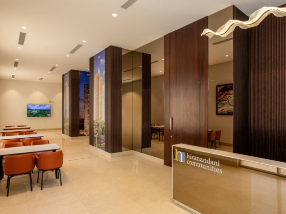 Hiranandani buildings are often inspired by Neoclassical Greek and Roman architecture, this sales lounge proves that prefab can be elegant, detailed, and timeless. By refining finishes, scale, and proportion through extensive R&D, we created a space that stands apart from the usual prefab designs.