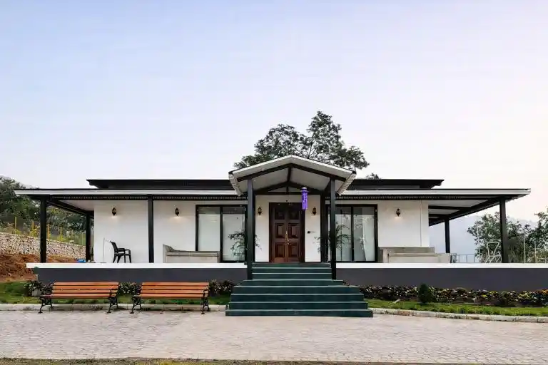 Designed as a perfect tropical retreat in Karjat, the home balances indoor living with nature. It encourages family bonding—often lost in urban life—while offering moments of solitude for reflection. Shaded decks invite you to enjoy monsoon rains, the soothing trickle of water, and serene outdoor breakfasts against a mountain backdrop.
