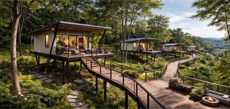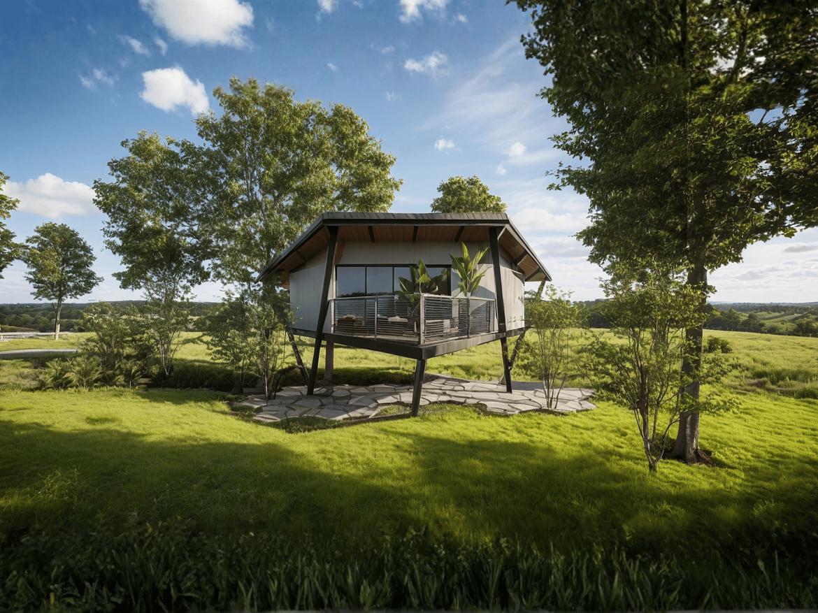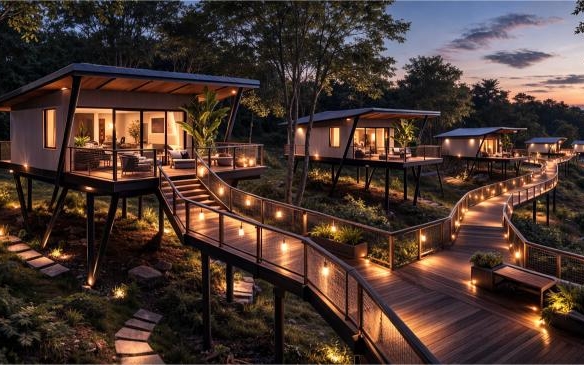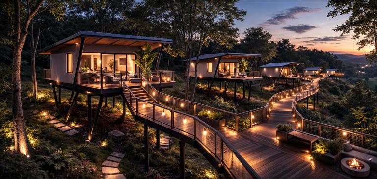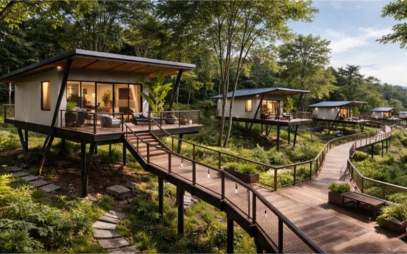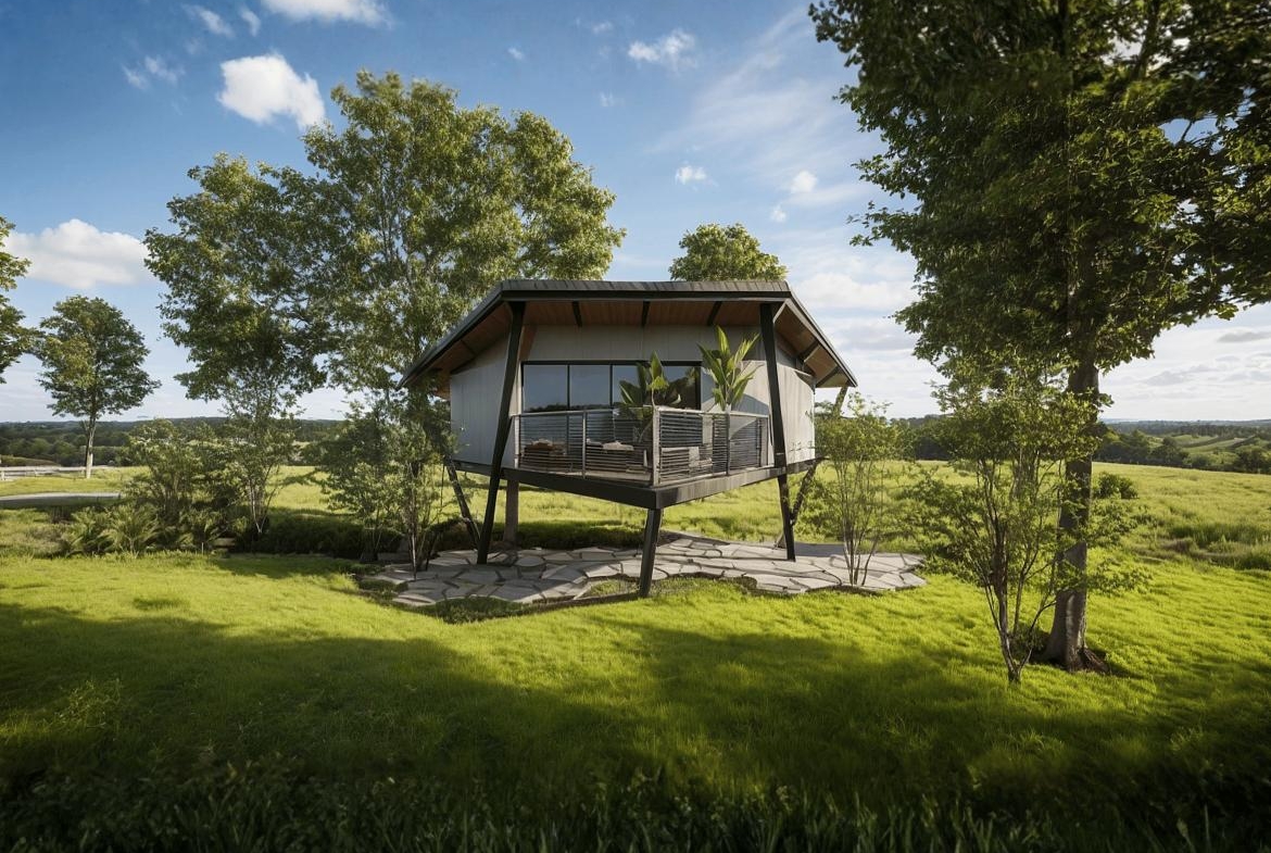 Tucked away in a natural setting, this modern elevated cottage provides a tranquil retreat with sweeping views of lush greenery. Crafted with sleek design and eco-friendly materials, it offers a private balcony, bright interiors filled with natural light, and a close connection to the outdoors, ideal for unwinding, creative stays, or a quiet escape.