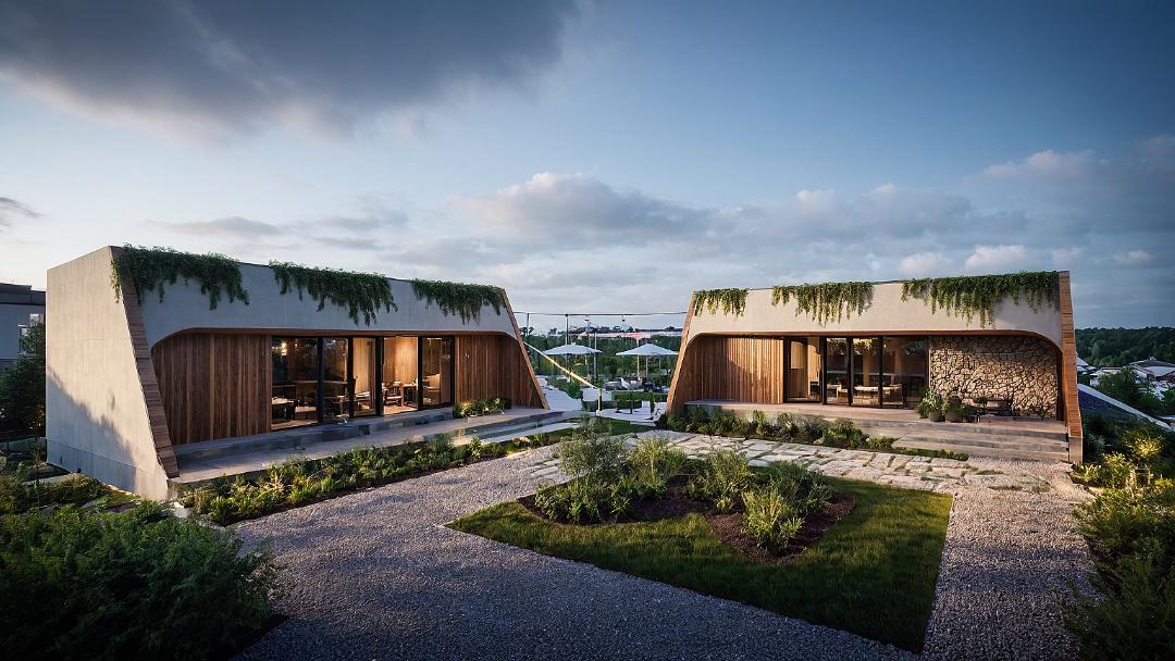 A refined garden pavilion designed in a classical style, featuring a sloped terracotta roof and expansive glass panels. It offers a bright, elegant space that blends indoor comfort with the outdoors, ideal for relaxation, leisure, or intimate gatherings.