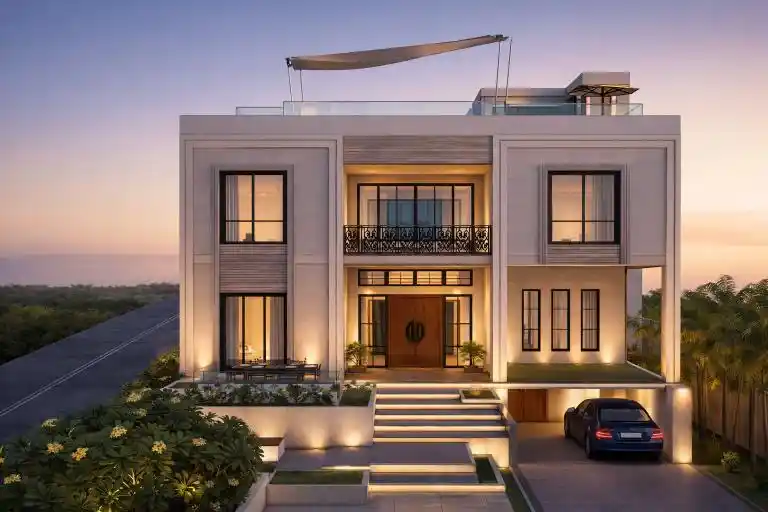 A contemporary villa designed to blend modern architecture with nature. Featuring clean lines, green balconies, and open terraces, the home offers seamless indoor–outdoor living with abundant light and ventilation. Built using prefabricated construction for faster delivery and superior quality.