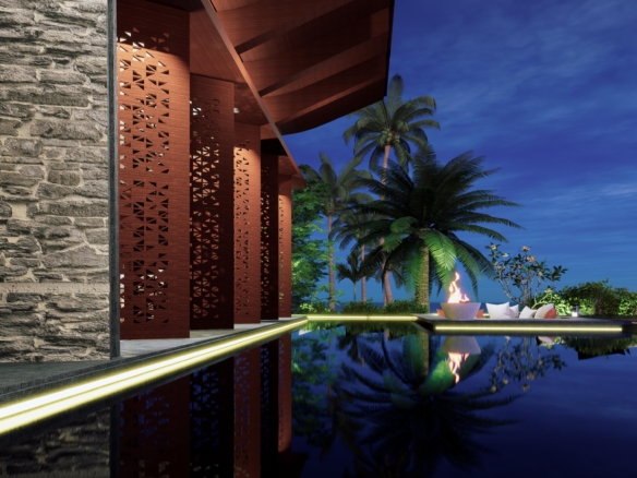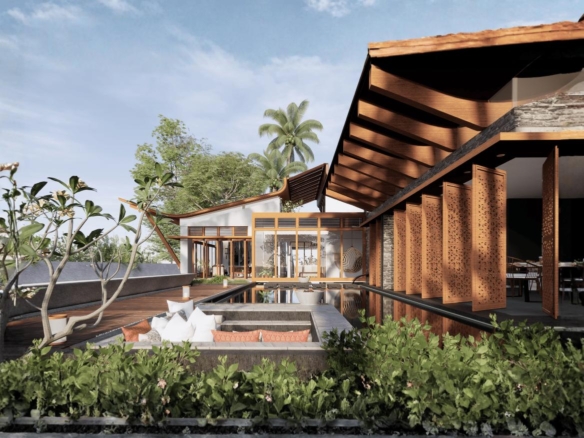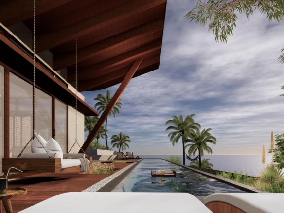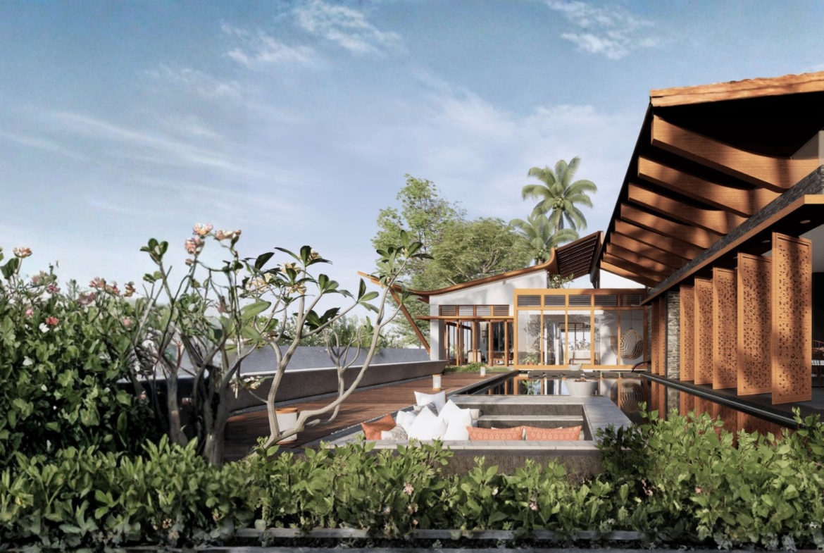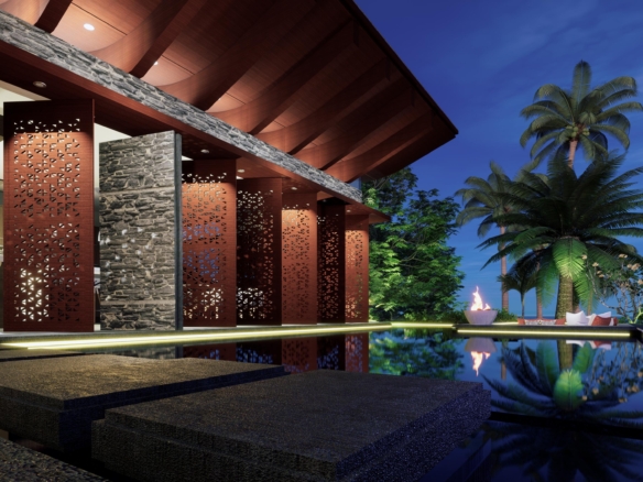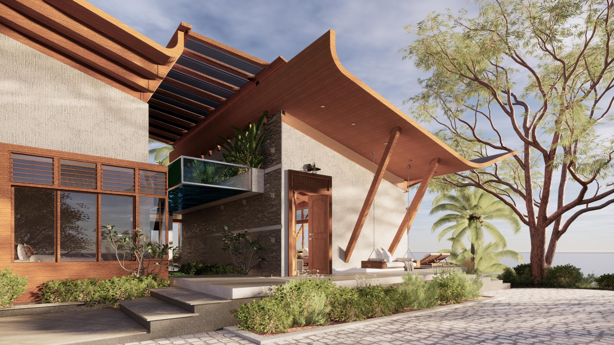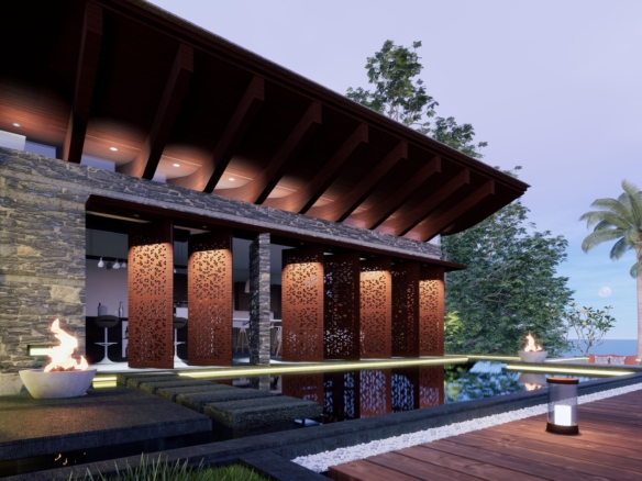 A modern interpretation of the butterfly roof portrays a connection to nature by blending within the panoramic surroundings. Meanwhile, cascading water with its rhythm acts as your very own spa experience through natural elements.