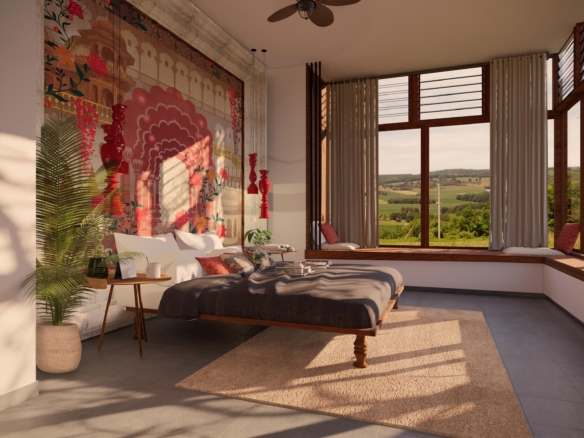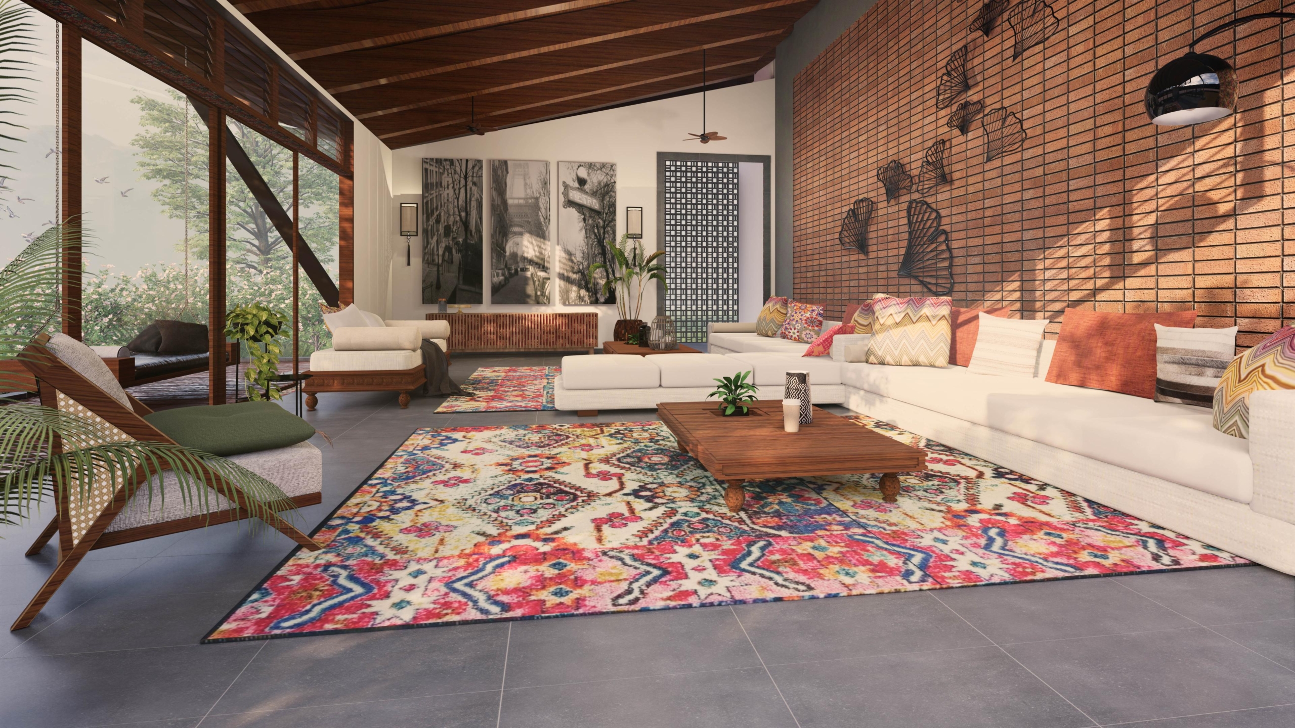 Equipped with state-of-art amenities, this 6700 sq. ft. villa is part of the Bohemian Rhapsody series with its splash of drama merged with earthy materials. A living dream in itself the villa merges a pop of colour, floral patterns, elegant textures and techno-art to create a new-age interpretation of a farmhouse. Piquing your explorative side, the design opens up to nature with floor-to-ceiling openings and outdoor decks.