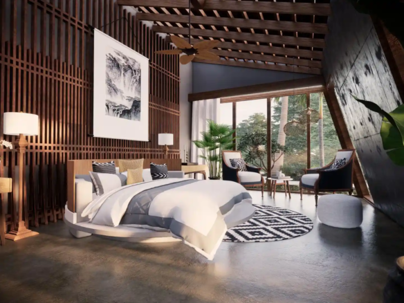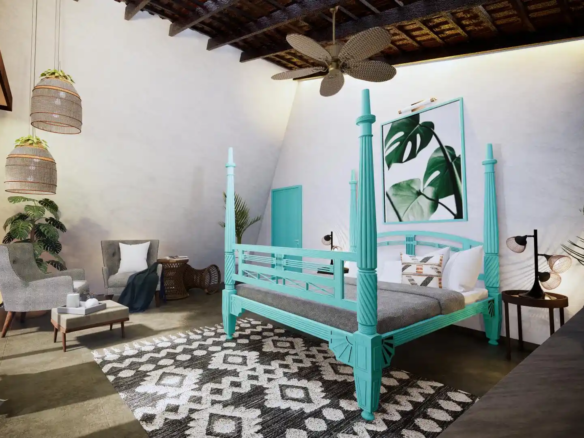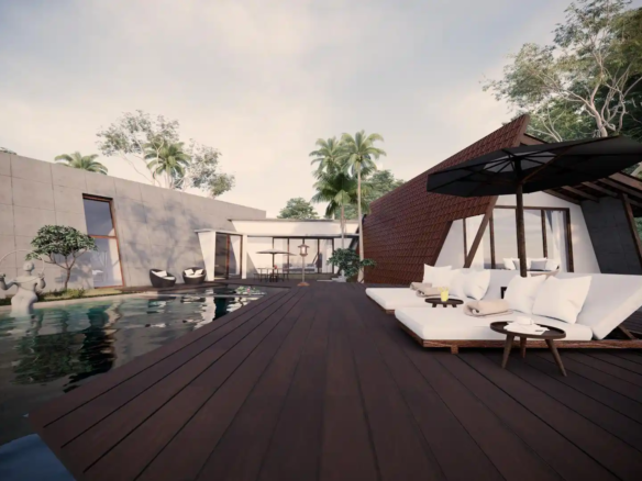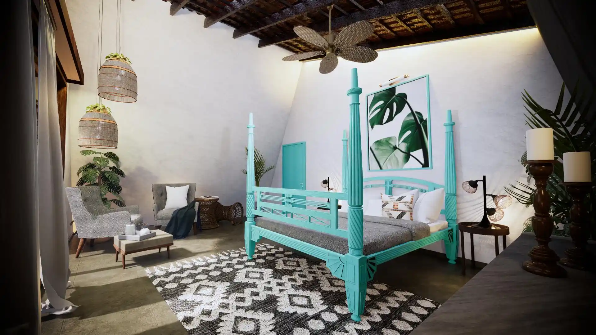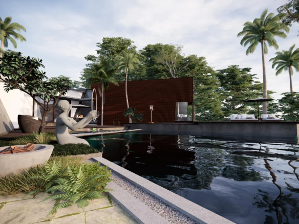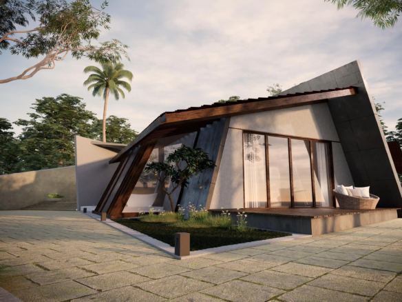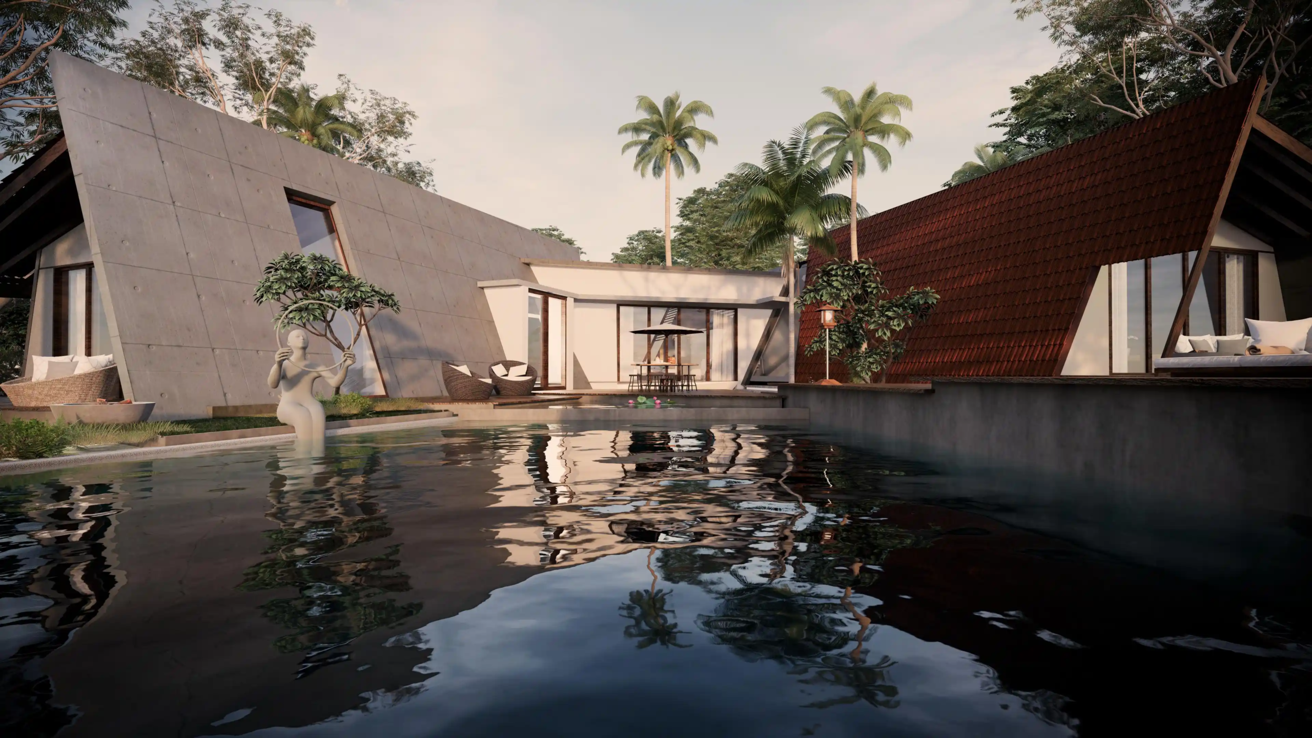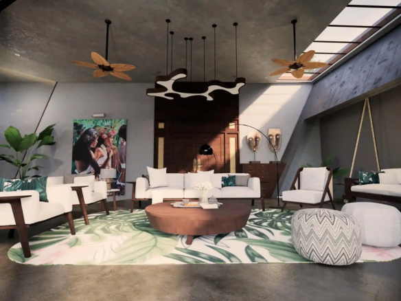3 Bed • 3 Bath | Built-up: 3713.55 sq.ft | Deck: 1585 sq.ft | Total: 5298.55 sq.ft | Hawaiian Architecture | Timeless Edition 1 – Tropical Tints | Ground Floor | Recommended Plot: ~15,895.5 sq.ft | Timeline: 25 Weeks | Green Quotient: 80/100 | Durability: 2× Stronger Than Traditional Construction